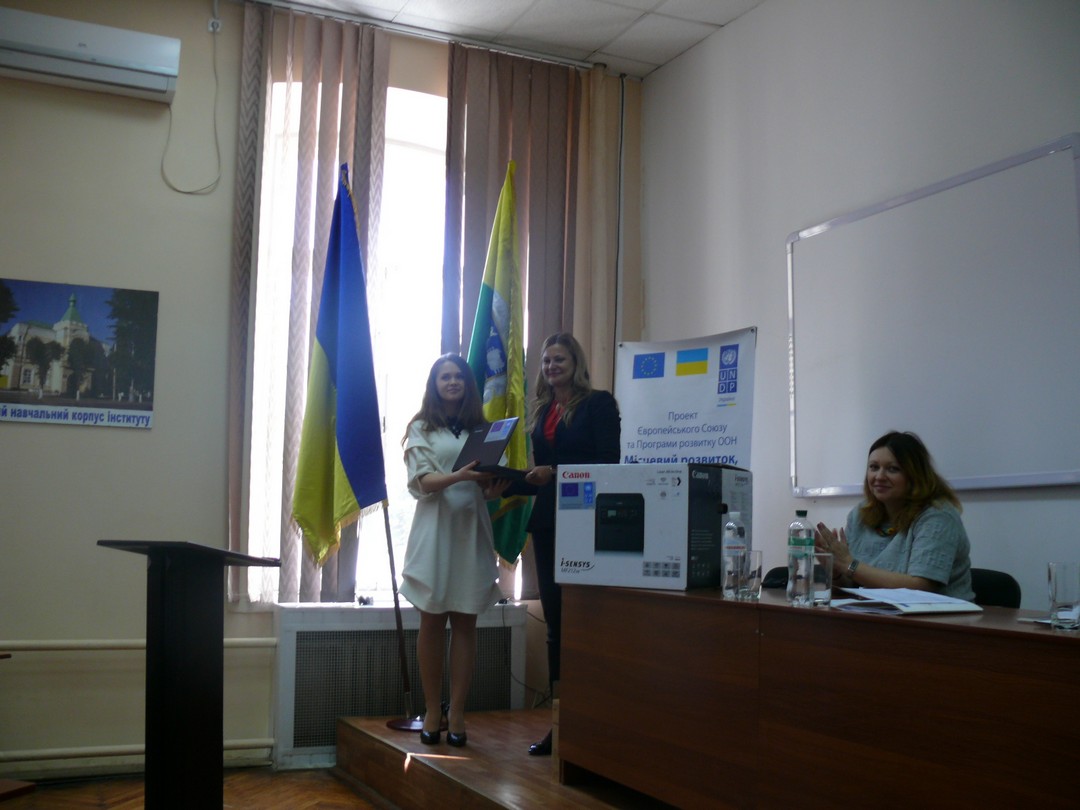 Зокрема, на зустрічі у Вінницькому торговельно-економічному інституті КНТЕУ підсумували минулорічні результати діяльності Ресурсного центру зі сталого розвитку, що діє при університеті, а координатор Центру Наталя Махначова представила план заходів на 2016 рік. Окрім того, оскільки цей ВНЗ за результатами оцінки діяльності за минулий рік було визнано переможцем, ресурсному центру було передано цінні й корисні для студентства подарунки. Отож, спеціаліст із моніторингу і зв’язків із громадськістю Проекту МРГ Світлана Слабінська, яка курирує напрямок університетської співпраці, вручила Ресурсному центру ноутбук та мультифункціональний пристрій.